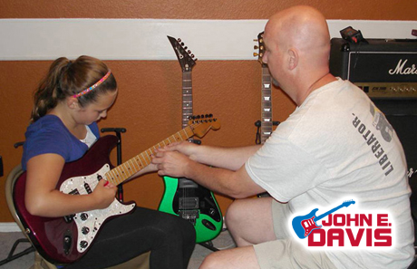 John E. Davis shows beginner and lead guitar lesson photos from students. The Texas Guitar School in Arlington, Texas offered acoustic, electric and lead guitar lessons as well as group and live performace lessons in the Dallas and Fort Worth metroplex.